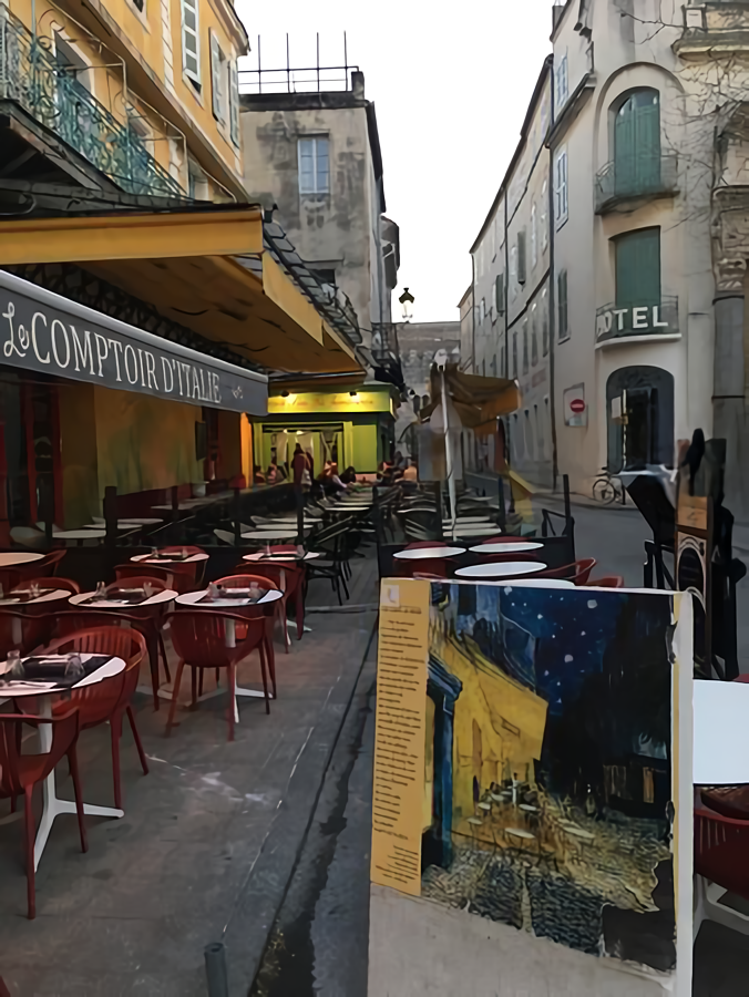 Peki, resimdeki kafe bugün hala duruyor mu? Evet! Arles’teki Place du Forum’da, Van Gogh’un oturduğu yer, resme bakarak kahve içmek isteyen ziyaretçiler için bir beton blokla işaretlenmiştir. Kafe, 1990’ların başında orijinal görünümüne kavuşmuş ve sanatçının anısına “Café van Gogh” olarak yeniden adlandırılmıştır. Böylece, siz de bu kafeyi ziyaret ederek, Van Gogh’un gözünden o anı deneyimleyebilir, belki de onun hislerini daha iyi anlayabilirsiniz. Tıpkı tablodaki gibi, lavanta kokusunun yemek kokularına karıştığı o sonbahar akşamını hayal edebilirsiniz.
